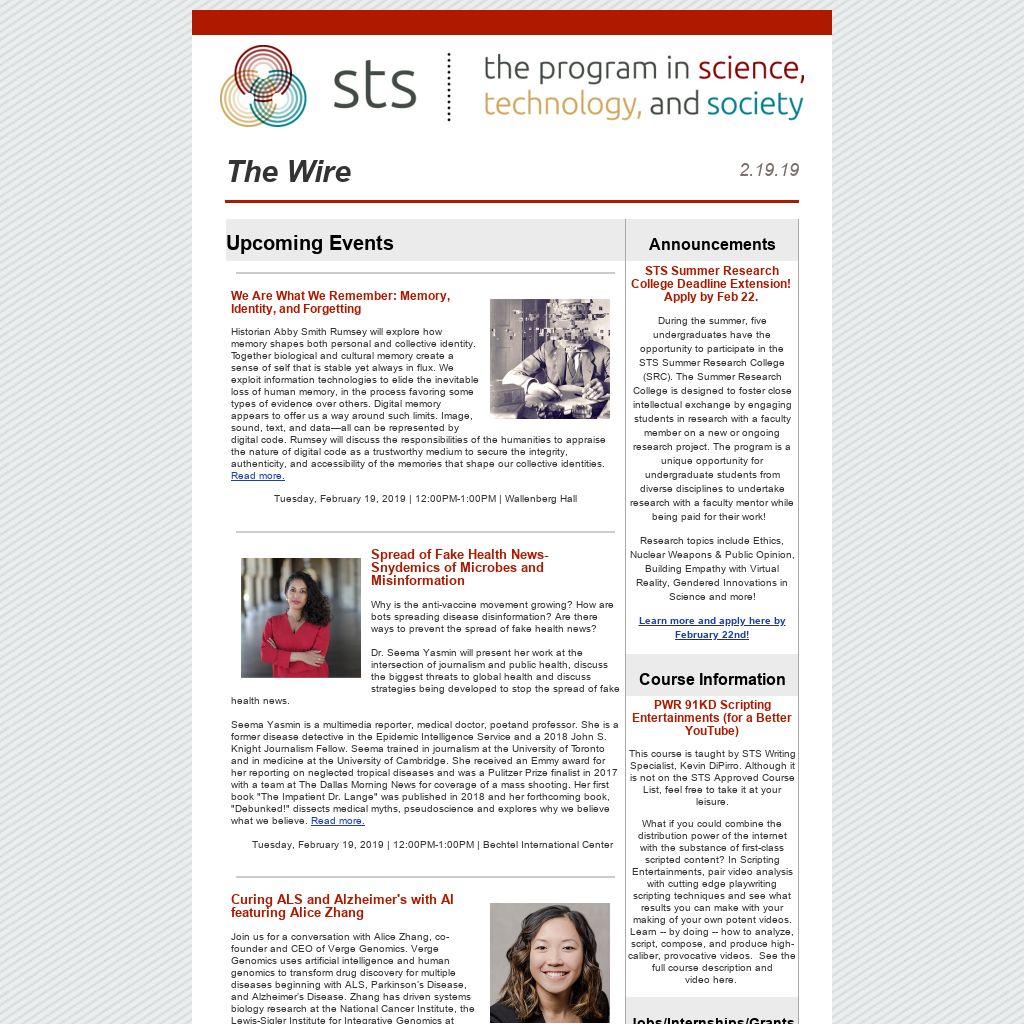| STS Summer Research College Deadline Extension! Apply by Feb 22. During the summer, five undergraduates have the opportunity to participate in the STS Summer Research College (SRC). The Summer Research College is designed to foster close intellectual exchange by engaging students in research with a faculty member on a new or ongoing research project. The program is a unique opportunity for undergraduate students from diverse disciplines to undertake research with a faculty mentor while being paid for their work! Research topics include Ethics, Nuclear Weapons & Public Opinion, Building Empathy with Virtual Reality, Gendered Innovations in Science and more!