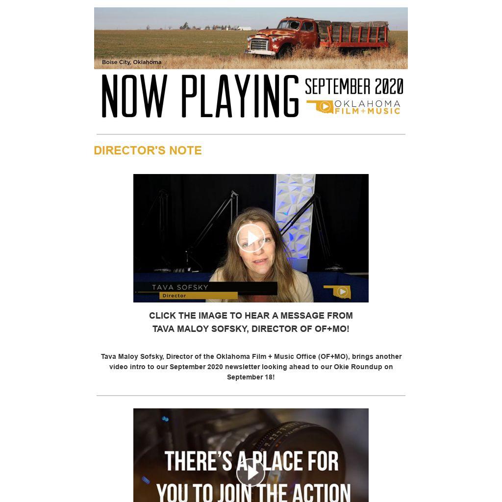 Tava Maloy Sofsky, Director of the Oklahoma Film + Music Office (OF+MO), brings another video intro to our September 2020 newsletter looking ahead to our Okie Roundup on September 18!