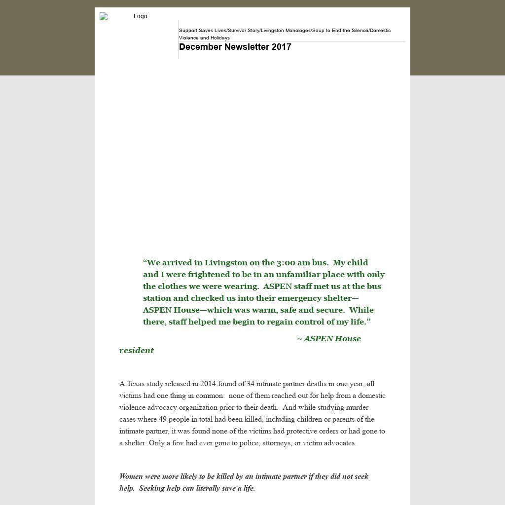 Find Help page or for Livingston, visit www.aspenmt.org for services and information. And, remember, you don’t need to figure out an escape plan right away—you can simply call to talk. If you can’t call safely from home, call from a trusted friend’s house, your doctor’s office or a public library.