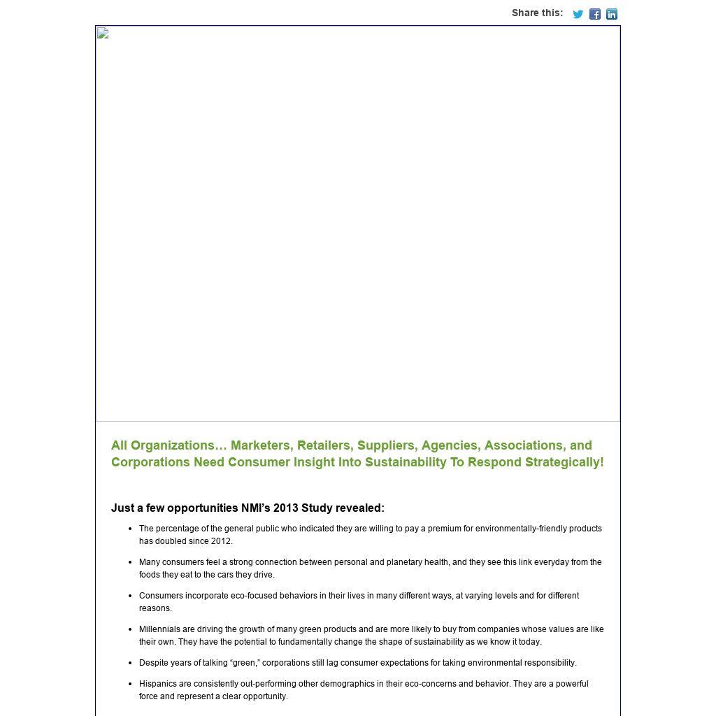 All Organizations… Marketers, Retailers, Suppliers, Agencies, Associations, and Corporations Need Consumer Insight Into Sustainability To Respond Strategically!