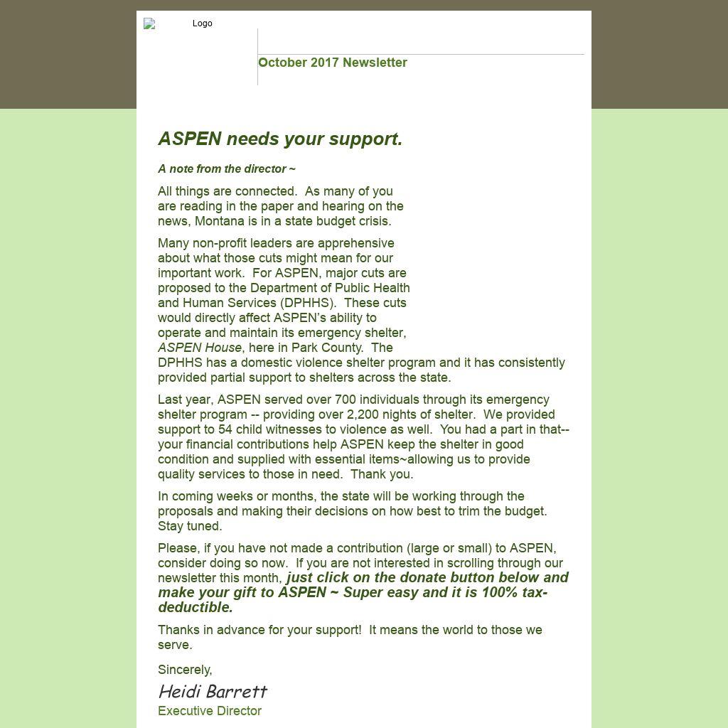 If you are interested in having someone speak to your group or classroom, please contact ASPEN at 406-222-5902 or at info@aspenmt.org.