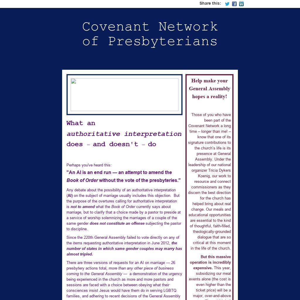 Those of you who have been part of the Covenant Network a long time – longer than me! – know that one of its signature contributions to the church’s life is its presence at General Assembly. Under the leadership of our national organizer Tricia Dykers Koenig, our work to resource and connect commissioners as they discern the best direction for the church has helped bring about real change. Our meals and educational opportunities are essential to the kind of thoughtful, faith-filled, theologically-grounded dialogue that are so critical at this moment