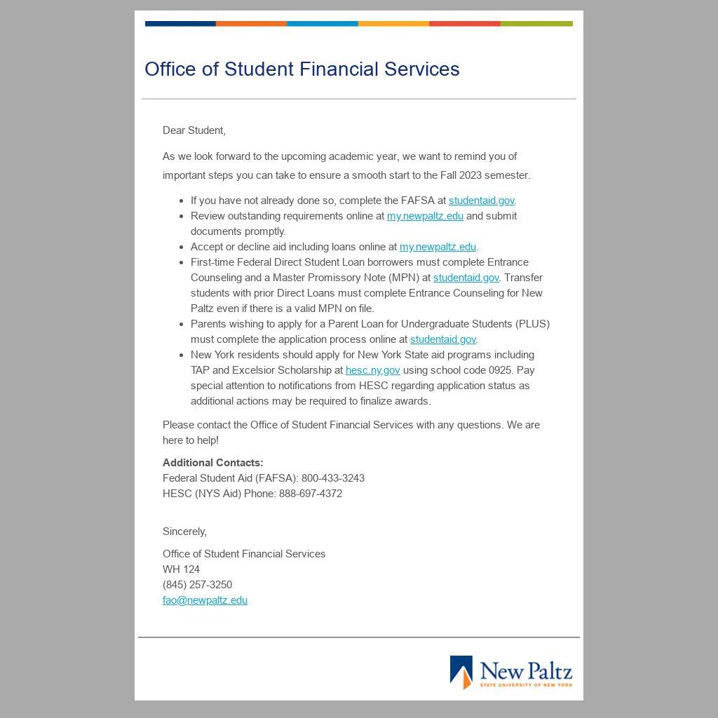 - Accept or decline aid including loans online at my.newpaltz.edu.