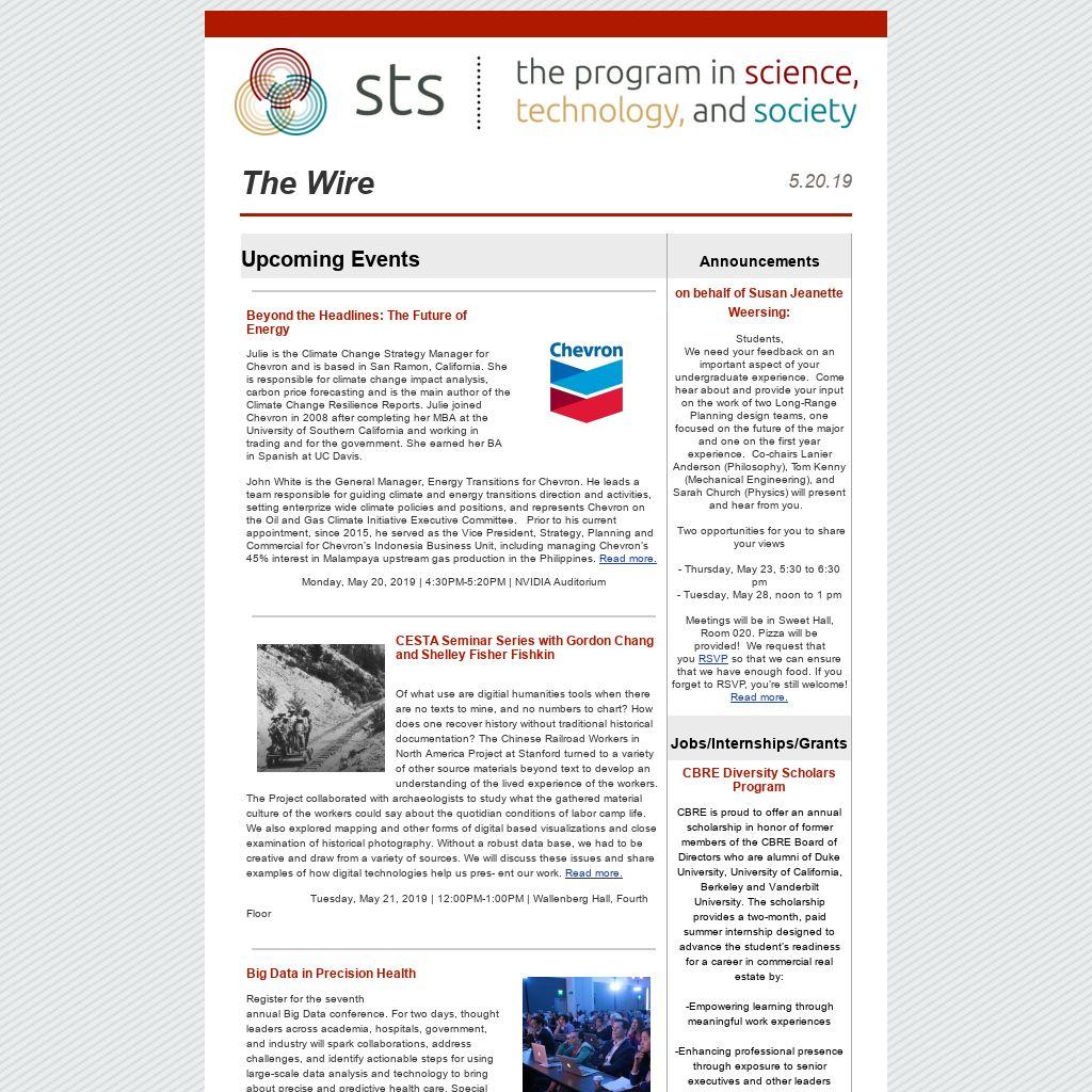 Students, We need your feedback on an important aspect of your undergraduate experience. Come hear about and provide your input on the work of two Long-Range Planning design teams, one focused on the future of the major and one on the first year experience. Co-chairs Lanier Anderson (Philosophy), Tom Kenny (Mechanical Engineering), and Sarah Church (Physics) will present and hear from you.