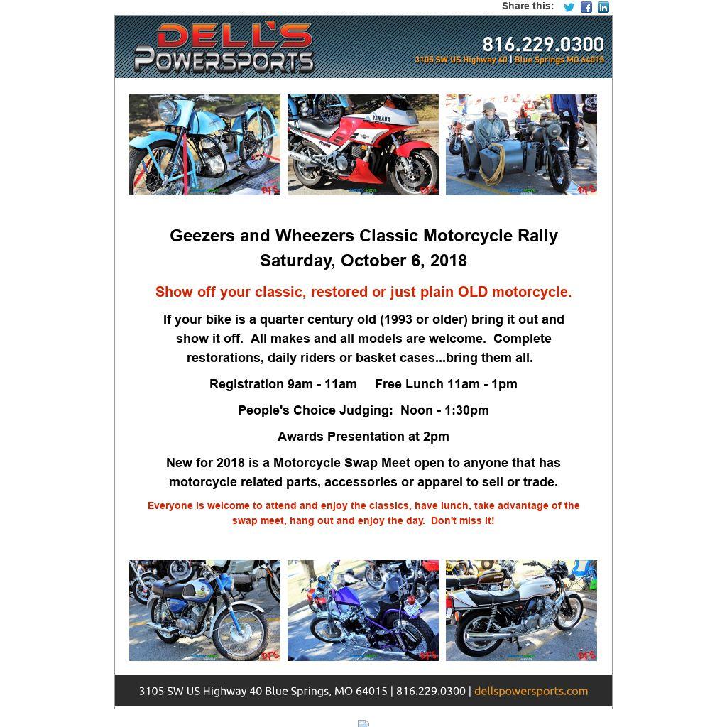 If your bike is a quarter century old (1993 or older) bring it out and show it off. All makes and all models are welcome. Complete restorations, daily riders or basket cases...bring them all.