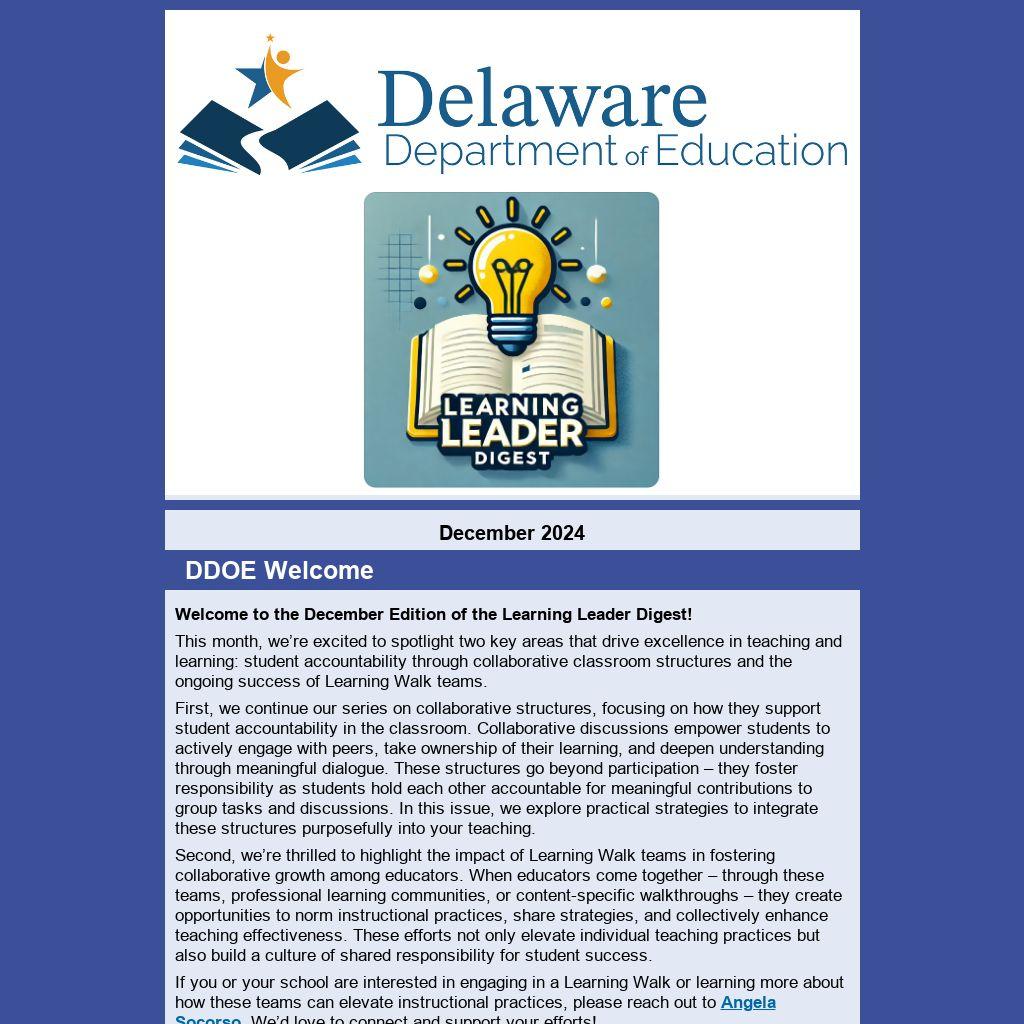 This month, we celebrate the Curriculum Team from Brandywine School District (BSD) for their leadership in fostering a culture of collaboration and excellence. Their innovative thinking and proactive approach have led to the creation of monthly visits designed to support ELA and math instruction in middle and high schools. Through their engagement with Learning Walk teams, they have inspired growth and continuous improvement within their schools. The team's energy, collaboration, and commitment to instructional excellence serve as a model for others across the state, highlighting how intentional, targeted efforts can make a significant impact on teaching and learning