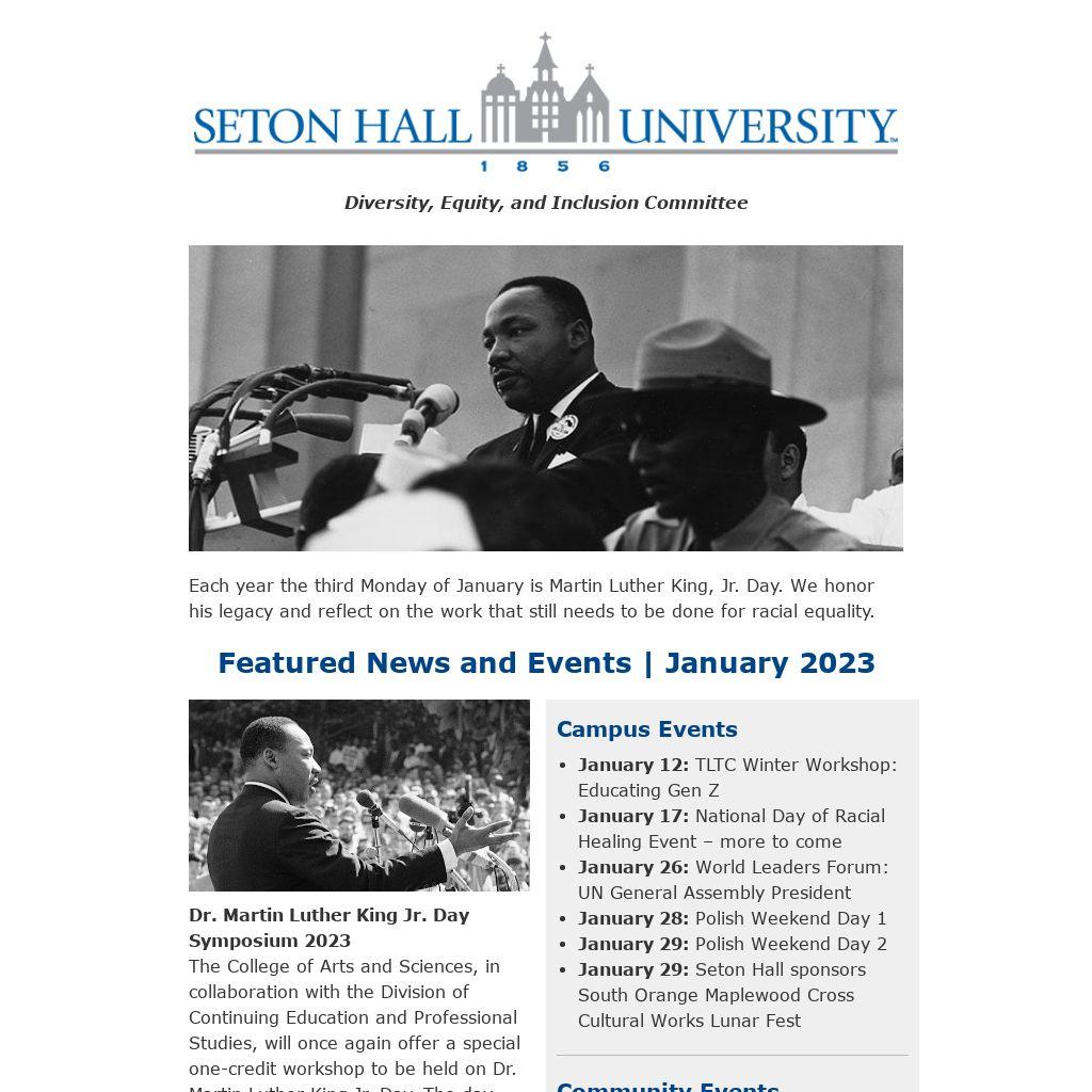 The DEI Committee helps cultivate and nurture a trusting and collaborative University community that educates and empowers all its members to advance equity, inclusion, and social justice on campus and in the wider world. Please email dei@shu.edu with events, initiatives, and ideas, or fill out our contact us form.