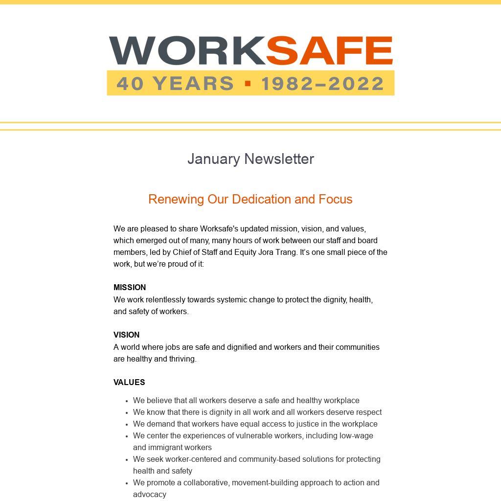 We are pleased to share Worksafe's updated mission, vision, and values, which emerged out of many, many hours of work between our staff and board members, led by Chief of Staff and Equity Jora Trang. It’s one small piece of the work, but we’re proud of it:
