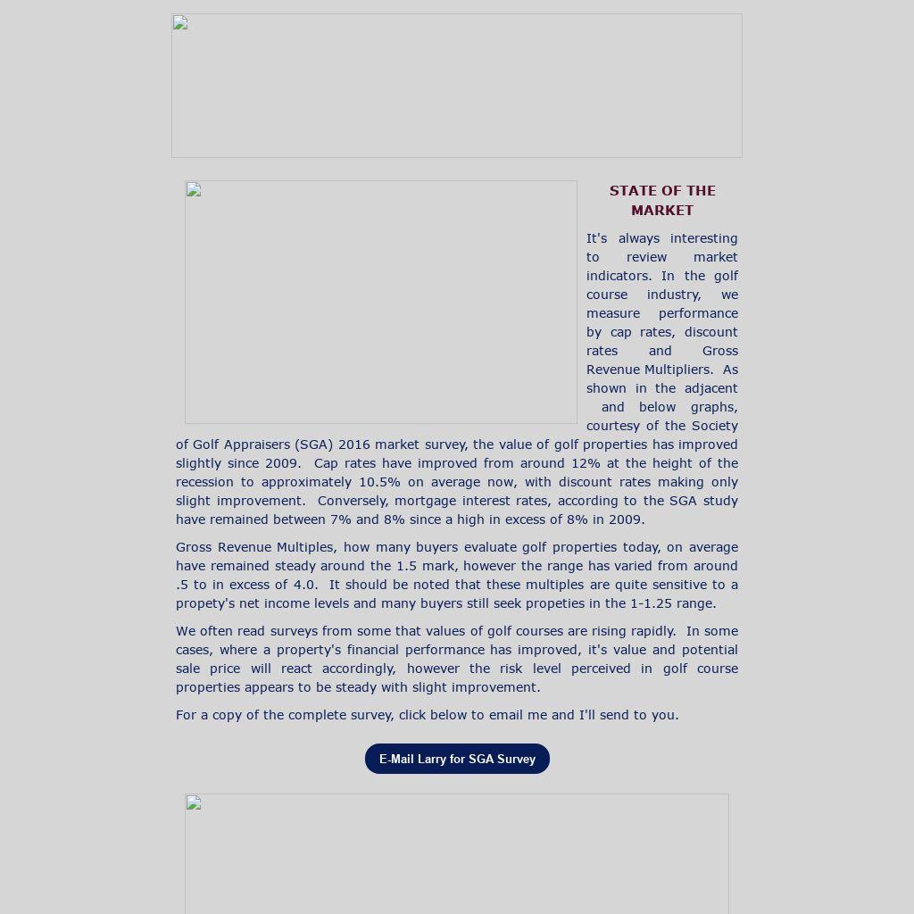 It's always interesting to review market indicators. In the golf course industry, we measure performance by cap rates, discount rates and Gross Revenue Multipliers. As shown in the adjacent and below graphs, courtesy of the Society of Golf Appraisers (SGA) 2016 market survey, the value of golf properties has improved slightly since 2009. Cap rates have improved from around 12% at the height of the recession to approximately 10.5% on average now, with discount rates making only slight improvement. Conversely, mortgage interest rates, according to the SGA study have remained between 7% and 8% since a high in excess of 8% in 2009.