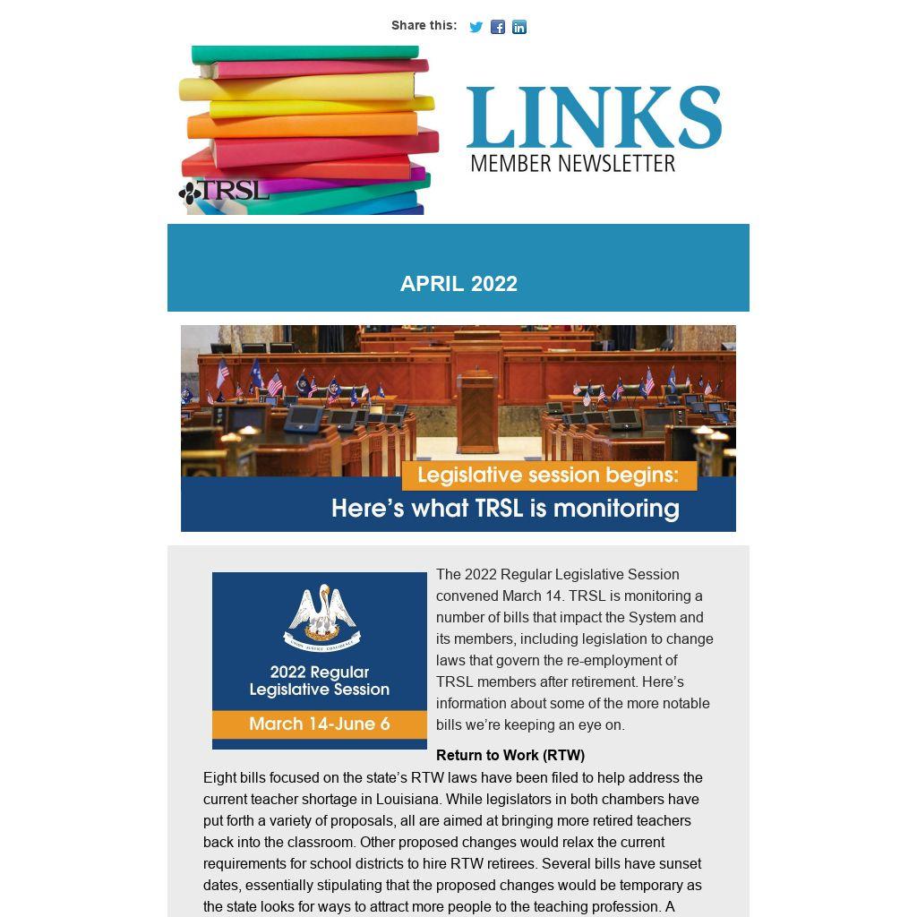 If you need assistance with Member Access, contact TRSL’s Help Desk at 225-925-6460. Or toll free outside the Baton Rouge area: at 1-877-275-8775.