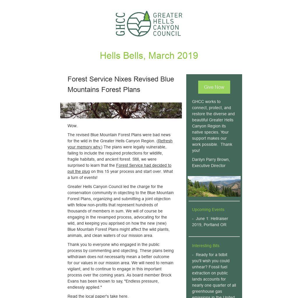 GHCC works to connect, protect, and restore the diverse and beautiful Greater Hells Canyon Region its native species. Your support makes our work possible. Thank you! Darilyn Parry Brown, Executive Director