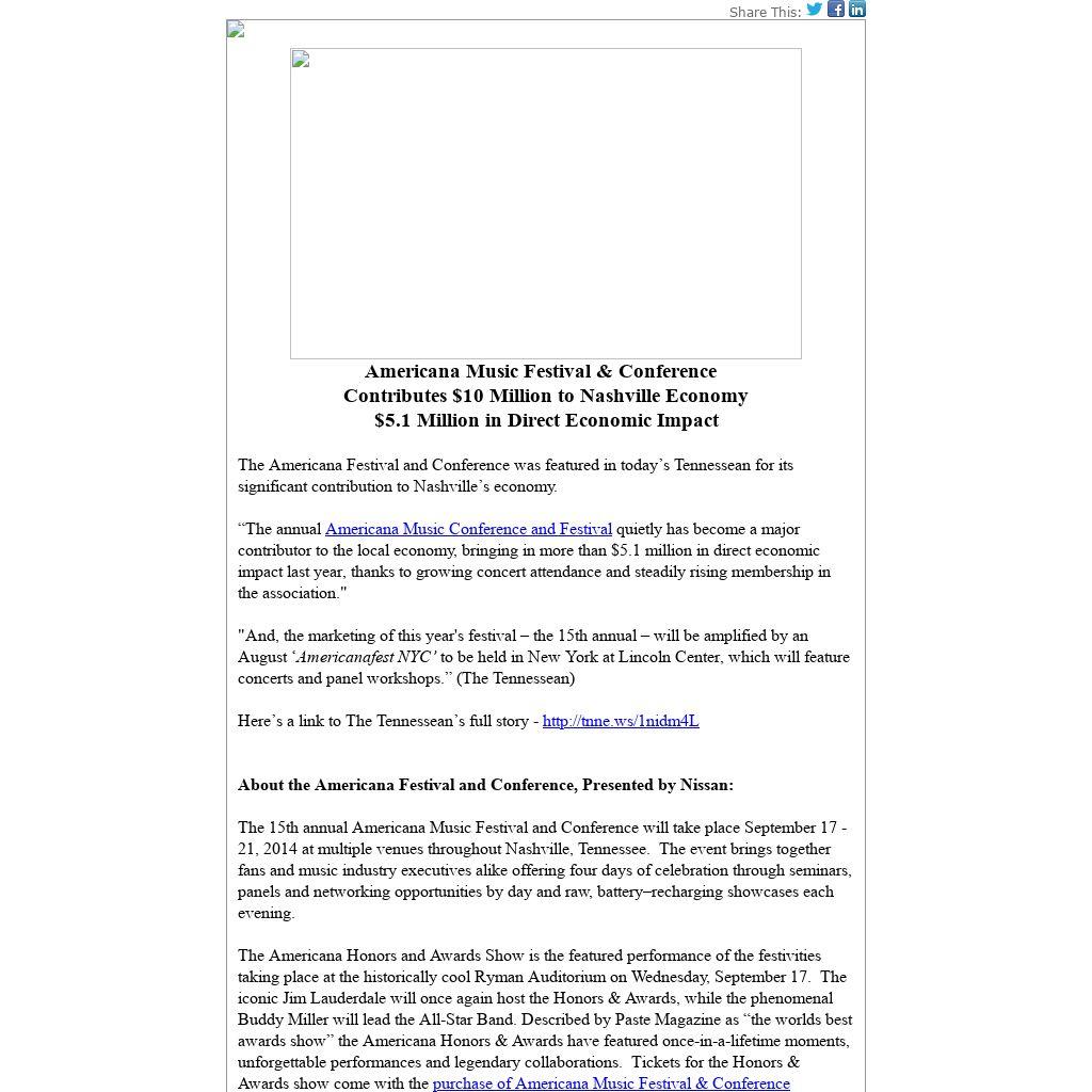 The Americana Festival and Conference was featured in today’s Tennessean for its significant contribution to Nashville’s economy.