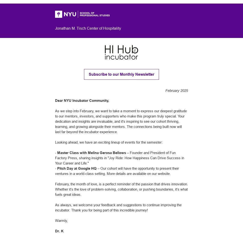 As we step into February, we want to take a moment to express our deepest gratitude to our mentors, investors, and supporters who make this program truly special. Your dedication and insights are invaluable, and it's inspiring to see our cohort thriving, learning, and growing alongside their mentors. The connections being built now will last far beyond the incubator experience.