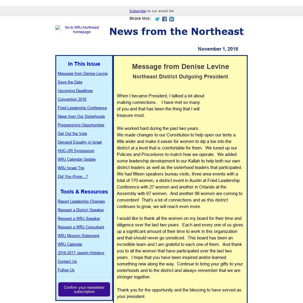 Using Gmail's Tab Layout? Drag this message to your Primary inbox so you won't miss any e‑blasts from WRJ Northeast District