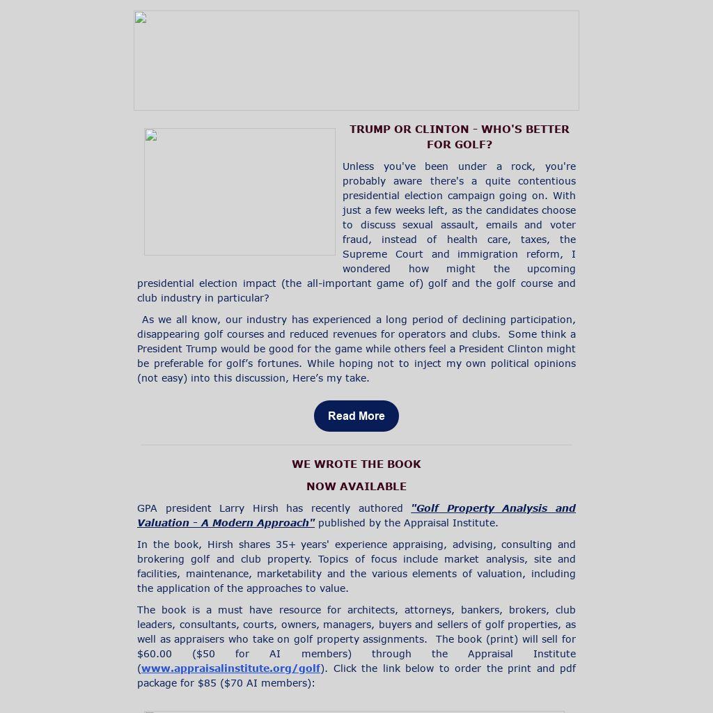 Unless you've been under a rock, you're probably aware there's a quite contentious presidential election campaign going on. With just a few weeks left, as the candidates choose to discuss sexual assault, emails and voter fraud, instead of health care, taxes, the Supreme Court and immigration reform, I wondered how might the upcoming presidential election impact (the all-important game of) golf and the golf course and club industry in particular?