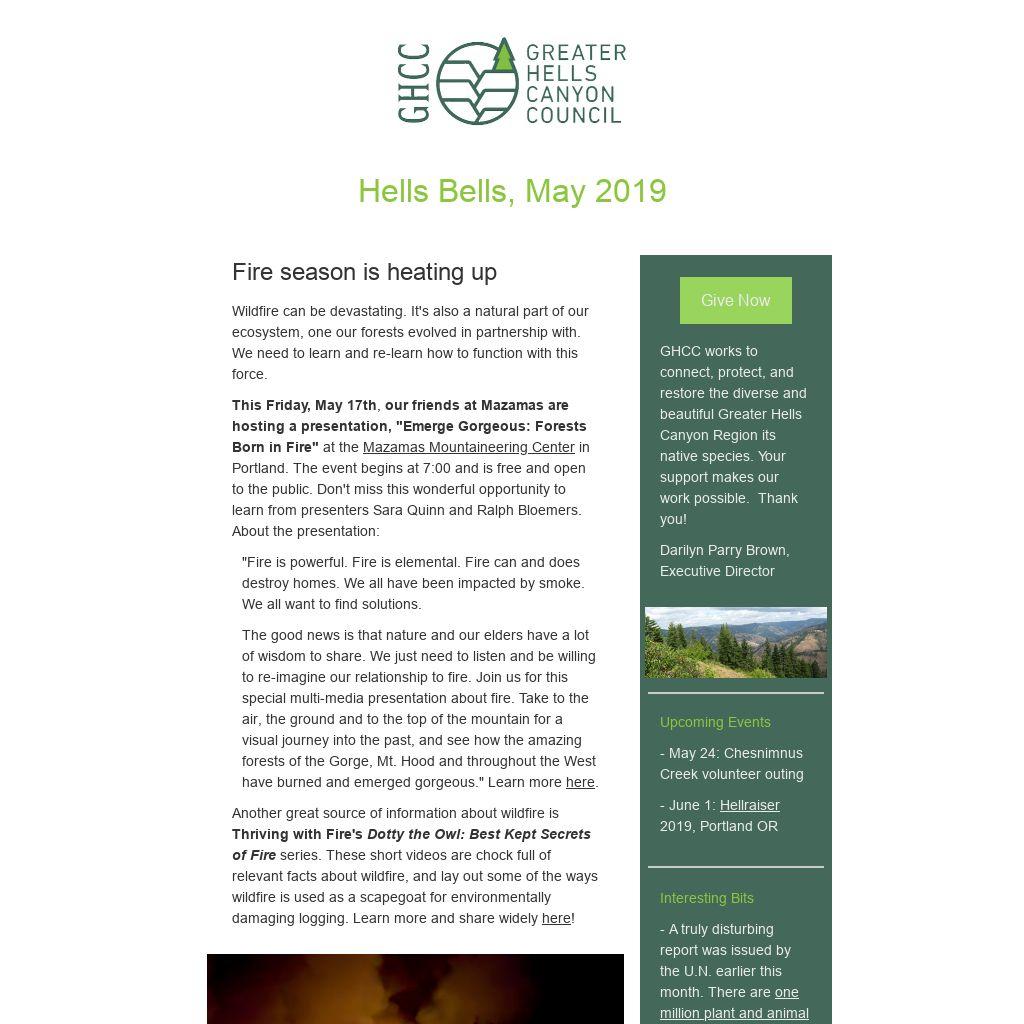 GHCC works to connect, protect, and restore the diverse and beautiful Greater Hells Canyon Region its native species. Your support makes our work possible. Thank you! Darilyn Parry Brown, Executive Director