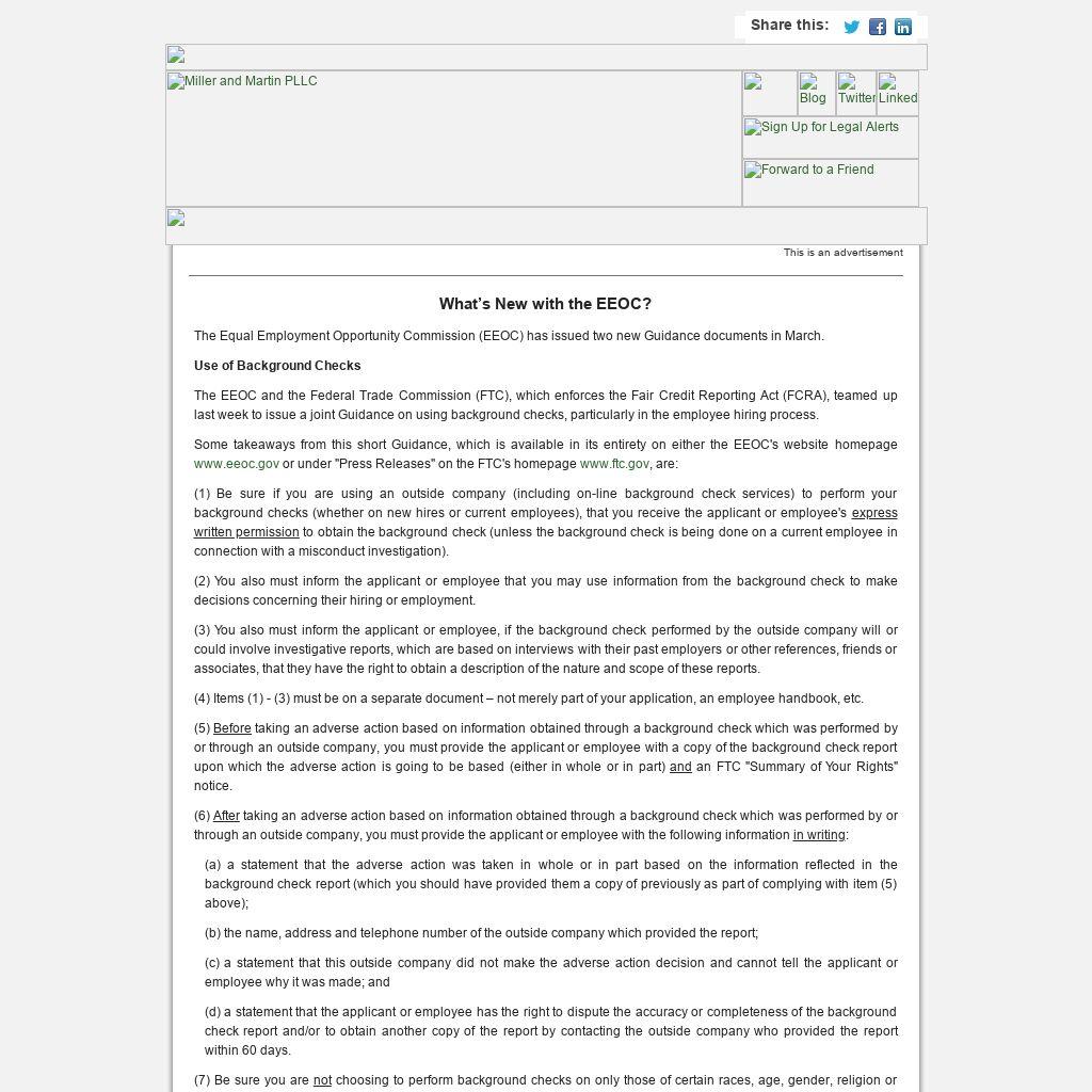 The opinions expressed in this bulletin are intended for general guidance only. They are not intended as recommendations for specific situations. As always, readers should consult a qualified attorney for specific legal guidance. Should you need assistance from a Miller & Martin attorney, please call 1-800-275-7303.