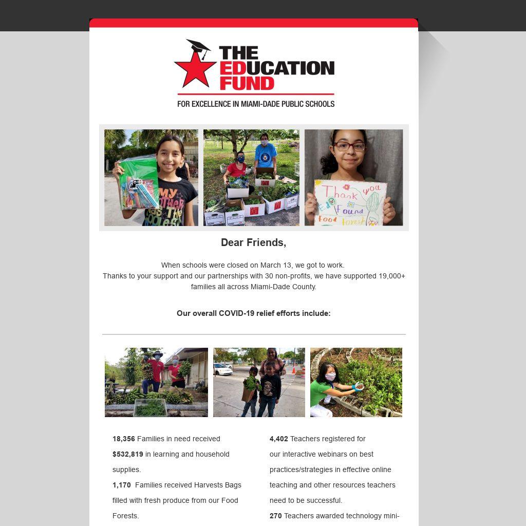 And, without pause, our distribution of household and learning supplies to families in need will continue all summer and next school year.