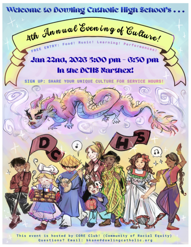 Join us on Jan. 22 for an Evening of Culture! Enjoy music, art and displays in the DCHS Narthex from 5-6:30 p.m. All are welcome!