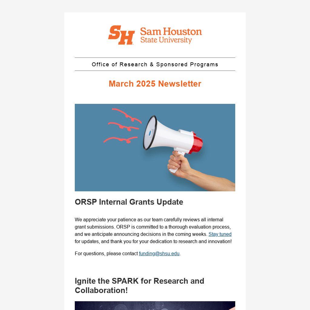 Do you have a project, event, or success story you'd like to share with the SHSU community? We're always looking to highlight the incredible work happening across campus. Submit a content request form and your story could be featured in our next newsletter!