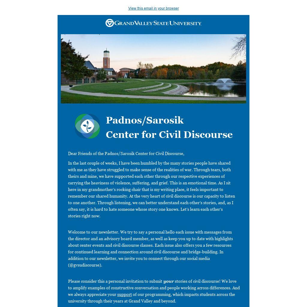 Dear Friends of the Padnos/Sarosik Center for Civil Discourse,