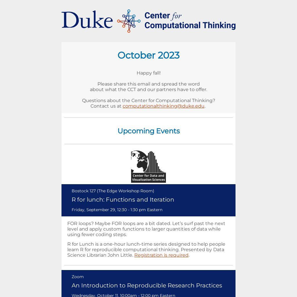 You're receiving this email because you participated in a Duke +DataScience learning experience or have expressed interest in the CCT.