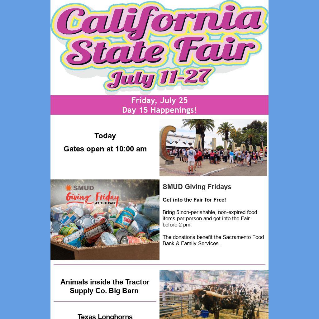 Bring 5 non-perishable, non-expired food items per person and get into the Fair before 2 pm.