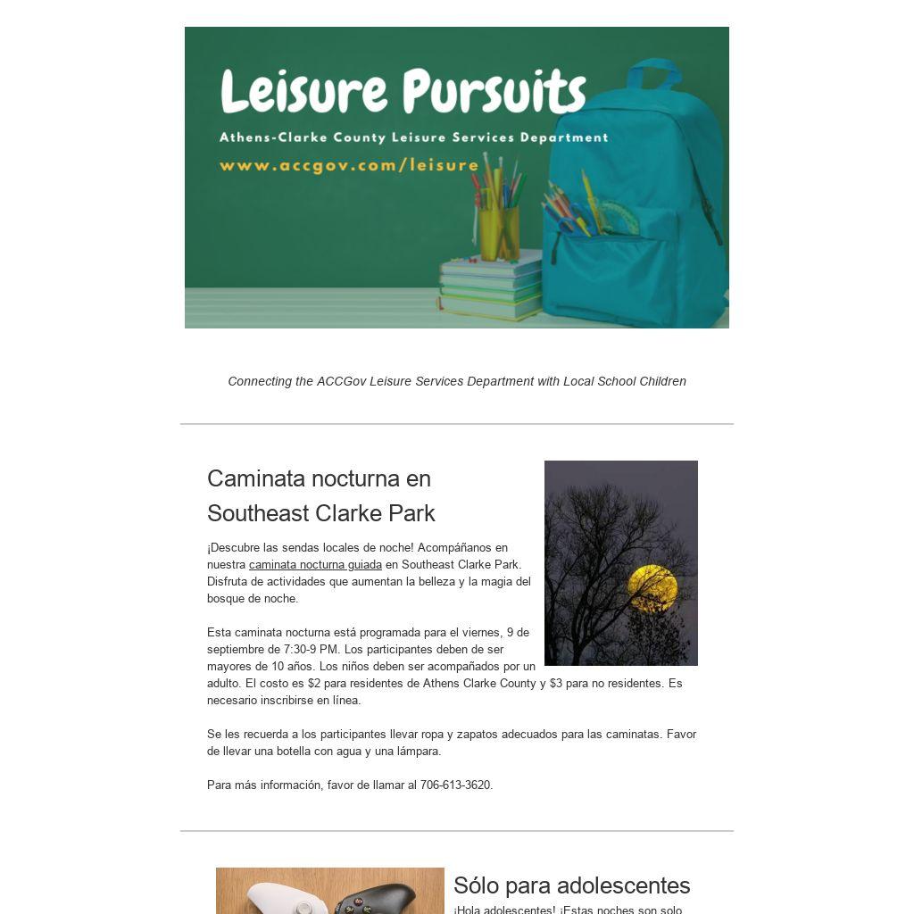 El Departamento de Leisure Services de Athens-Clarke County ofrece una selección diversa de actividades, incluyendo las artes, las ciencias ambientales, la recreación, deportes y eventos de días feriados para adultos y niños.