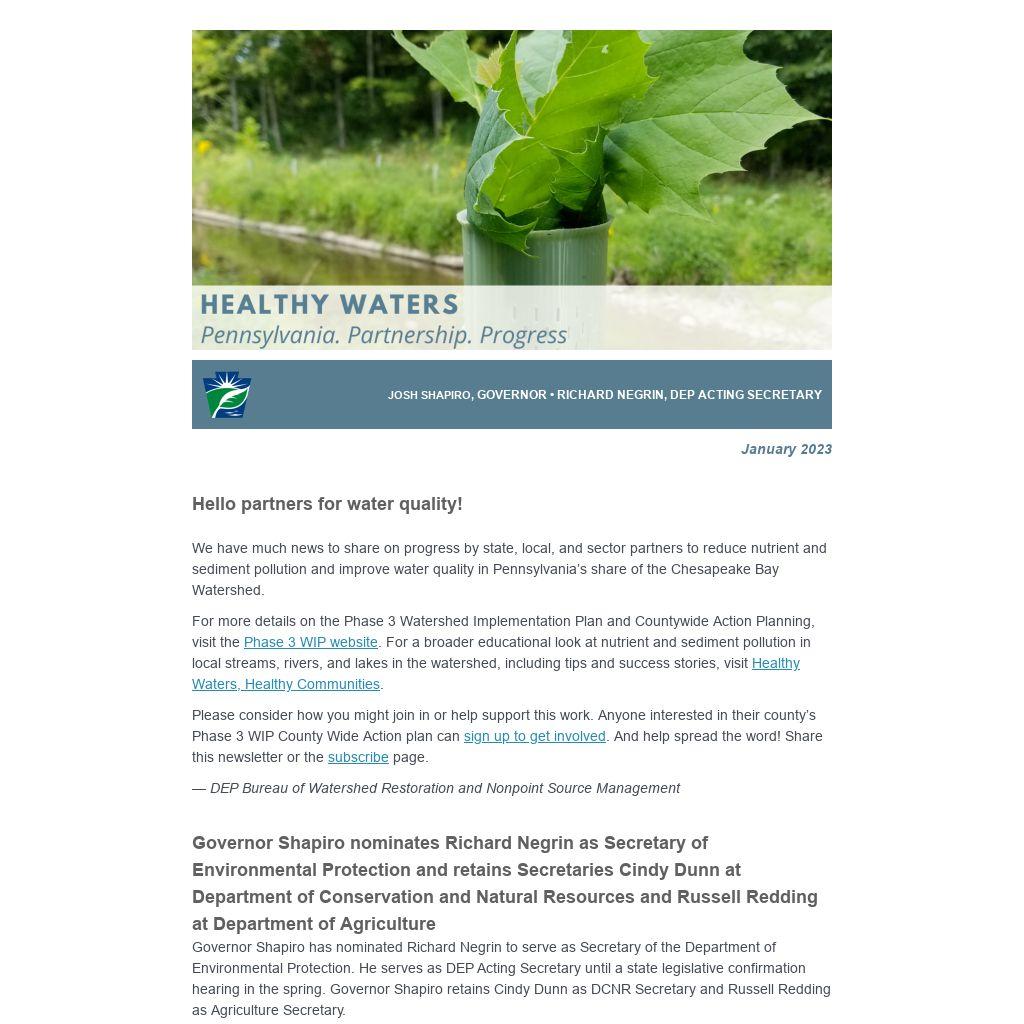 We have much news to share on progress by state, local, and sector partners to reduce nutrient and sediment pollution and improve water quality in Pennsylvania’s share of the Chesapeake Bay Watershed.