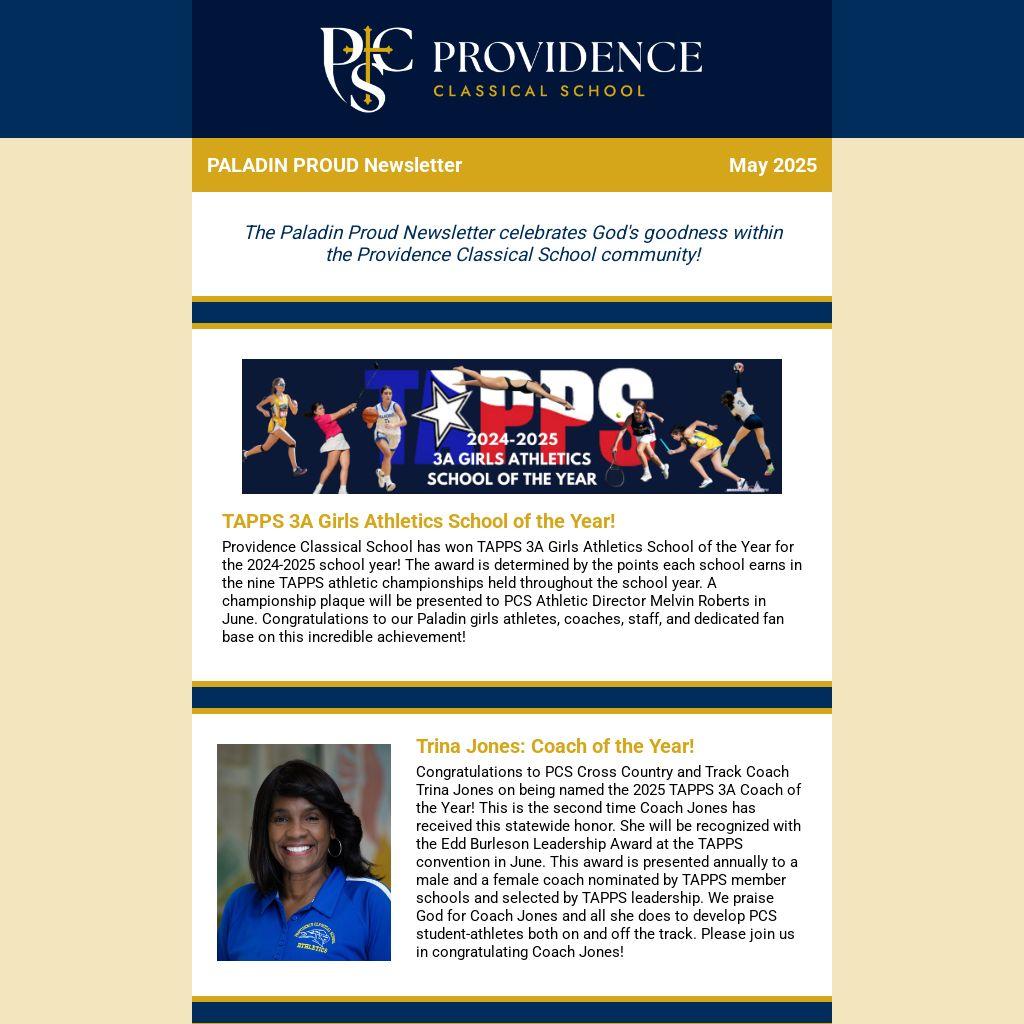 The Paladin Proud Newsletter celebrates God's goodness within the Providence Classical School community! |