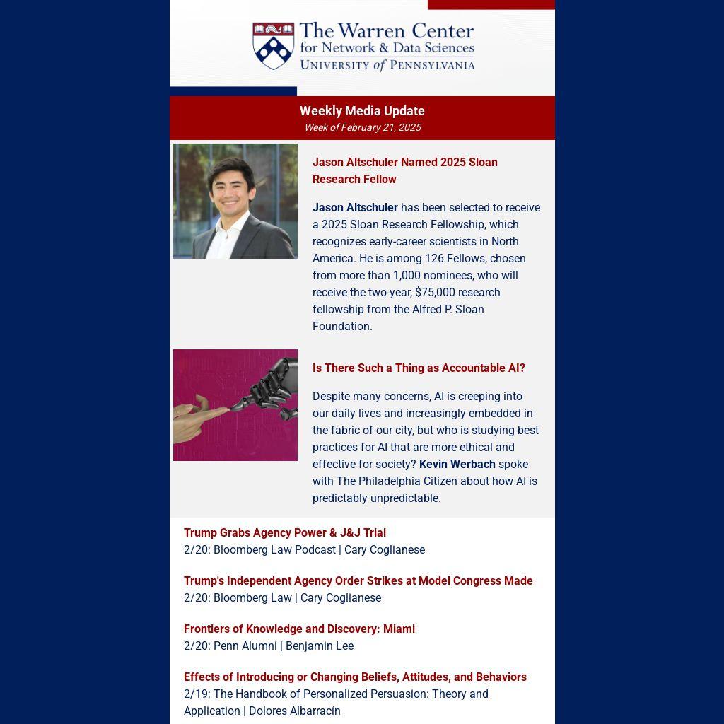 Jason Altschuler has been selected to receive a 2025 Sloan Research Fellowship, which recognizes early-career scientists in North America. He is among 126 Fellows, chosen from more than 1,000 nominees, who will receive the two-year, $75,000 research fellowship from the Alfred P. Sloan Foundation.