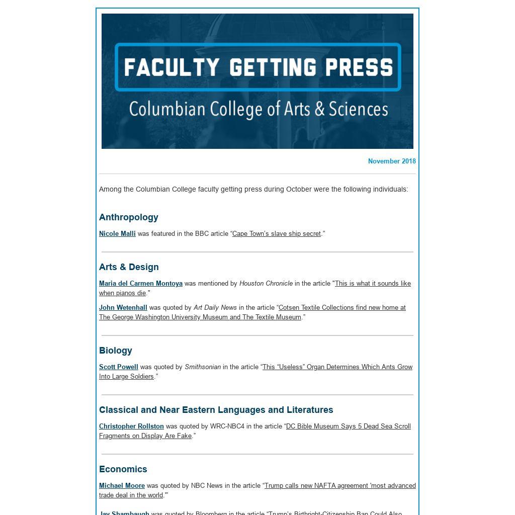 Columbian College of Arts and Sciences 801 22nd St. NW