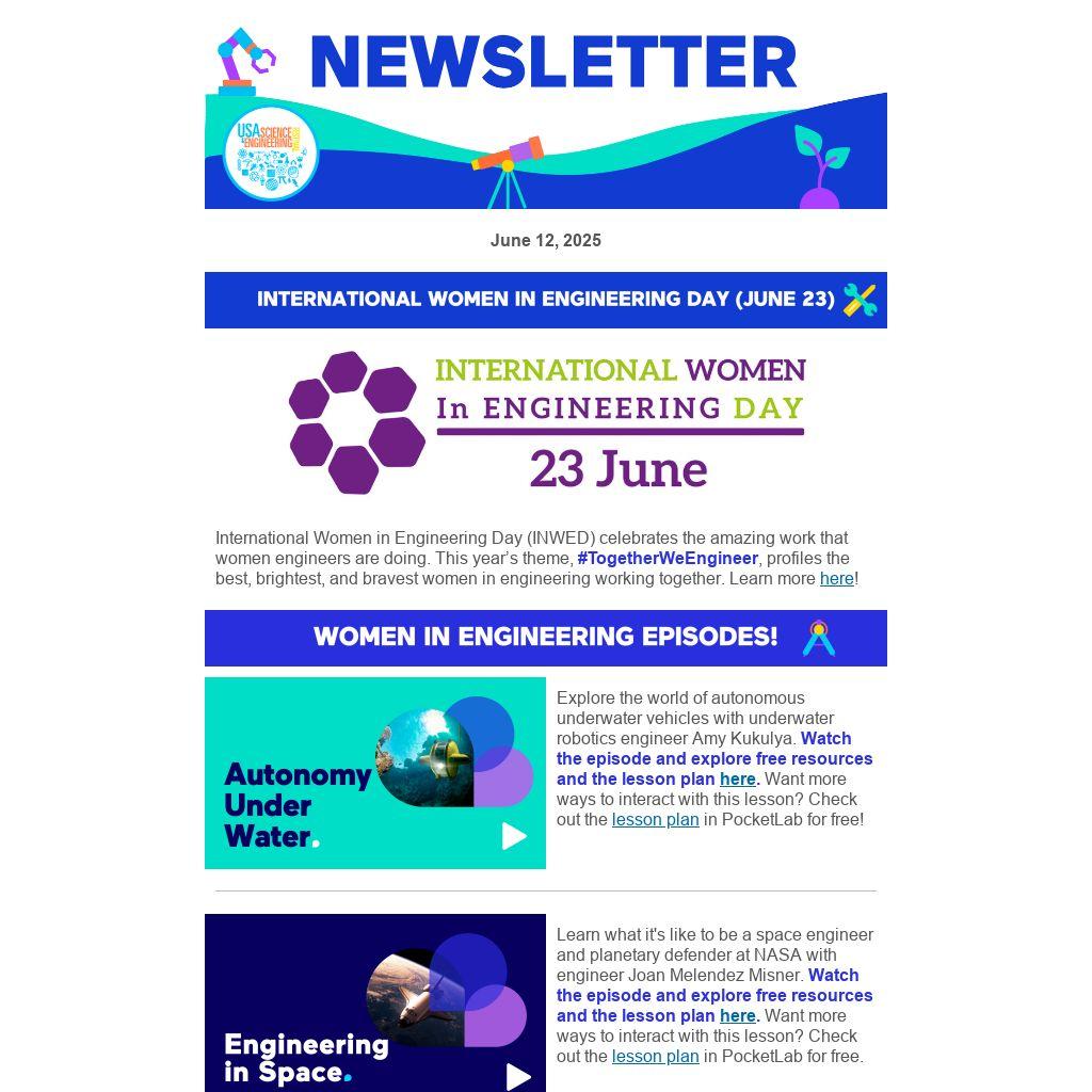 International Women in Engineering Day (INWED) celebrates the amazing work that women engineers are doing. This year’s theme, #TogetherWeEngineer, profiles the best, brightest, and bravest women in engineering working together. Learn more here!