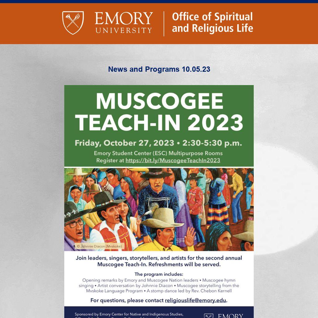 Emory OSRL ENews is published weekly during term by the Emory University Office of Spiritual and Religious Life publicizing Atlanta-campus spiritual life programs. It is not a comprehensive listing. For Oxford College spiritual life, please click here. To submit information or to update your preferences, please contact religiouslife@emory.edu.