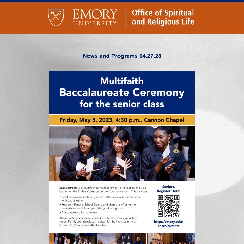 Emory OSRL ENews is published weekly during the term by the Emory University Office of Spiritual and Religious Life publicizing Atlanta-campus spiritual life programs. It is not a comprehensive listing. For Oxford College spiritual life, please click here. To submit information or to update your preferences, please contact religiouslife@emory.edu.