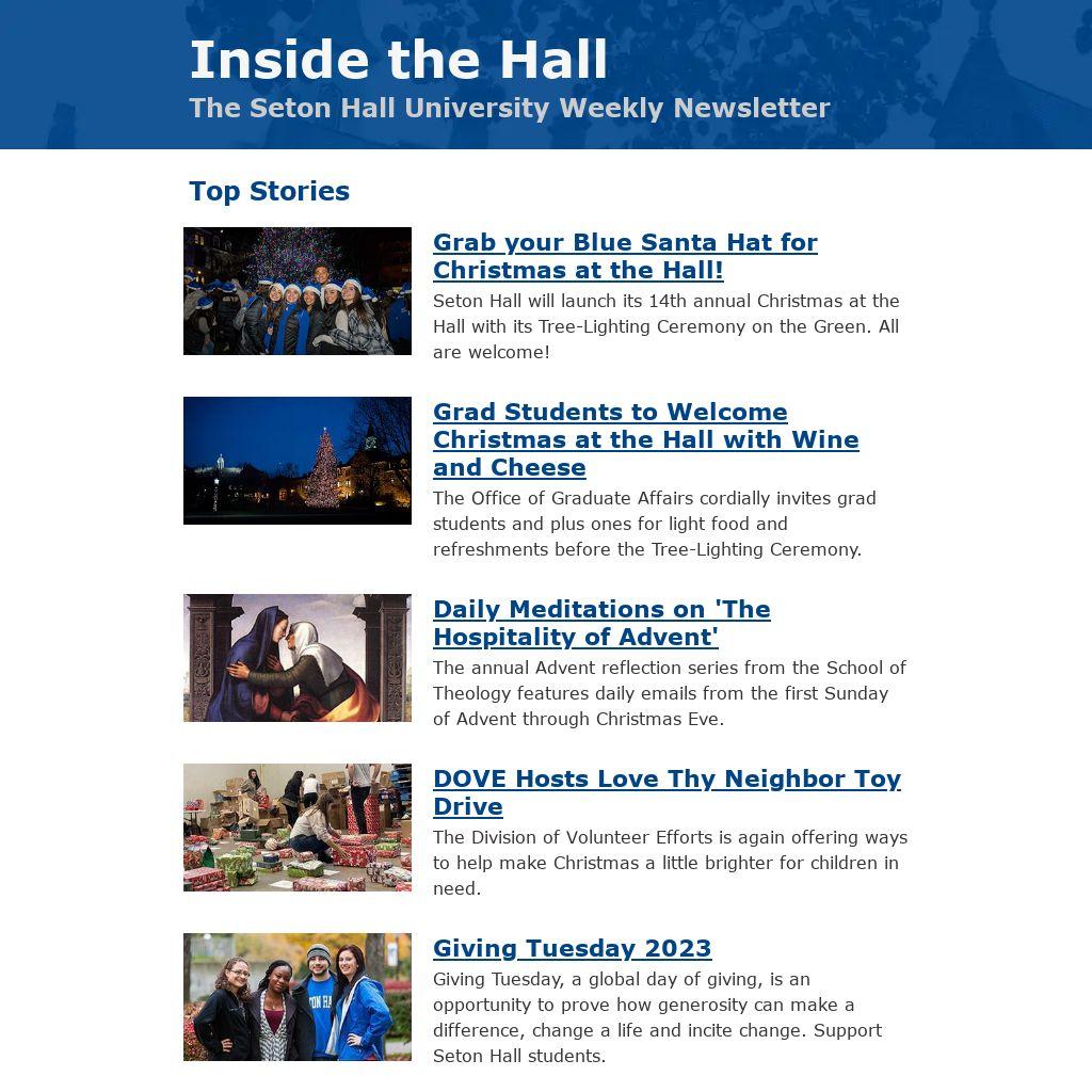 Seton Hall will launch its 14th annual Christmas at the Hall with its Tree-Lighting Ceremony on the Green. All are welcome!