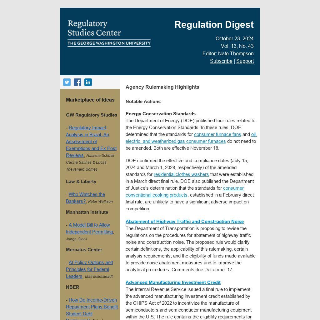 DOE confirmed the effective and compliance dates (July 15, 2024 and March 1, 2028, respectively) of the amended standards for residential clothes washers that were established in a March direct final rule. DOE also published the Department of Justice’s determination that the standards for consumer conventional cooking products, established in a February direct final rule, are unlikely to have a significant adverse impact on competition.