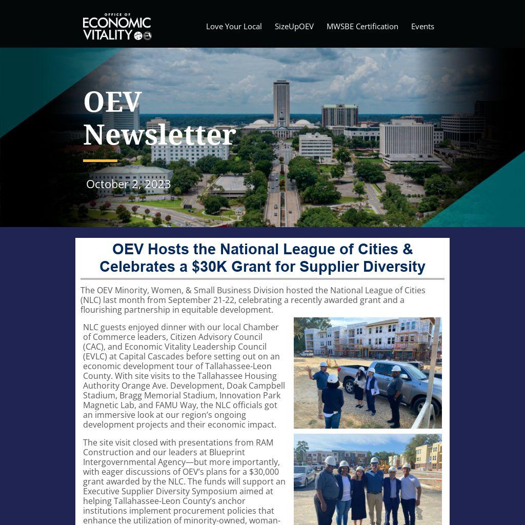 Delve into past issues of the OEV Newsletter to catch up on updates, insights, economic development initiatives, programs, and opportunities in Tallahassee-Leon County!