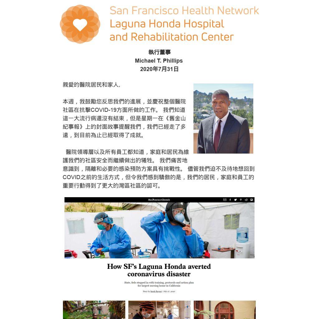 “We had to act swiftly to control the spread of the virus and ensure the health of residents and staff — especially as we saw what was happening at similar facilities across the country. While we’re still in the midst of this pandemic and must remain vigilant, we can recognize that the outbreak at Laguna Honda could have been tragic for residents, staff, and their families.”