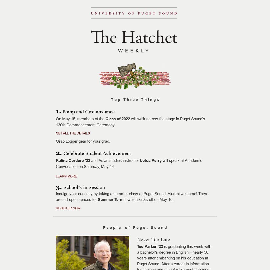 Ted Parker ’22 is graduating this week with a bachelor's degree in English—nearly 50 years after embarking on his education at Puget Sound. After a career in information technology and a brief retirement, followed by a second career, Parker felt the time was right to return to campus. "The opportunity to finish my degree—and to do something I know that I enjoy—and the chance to learn new stuff, was irresistible," he says.