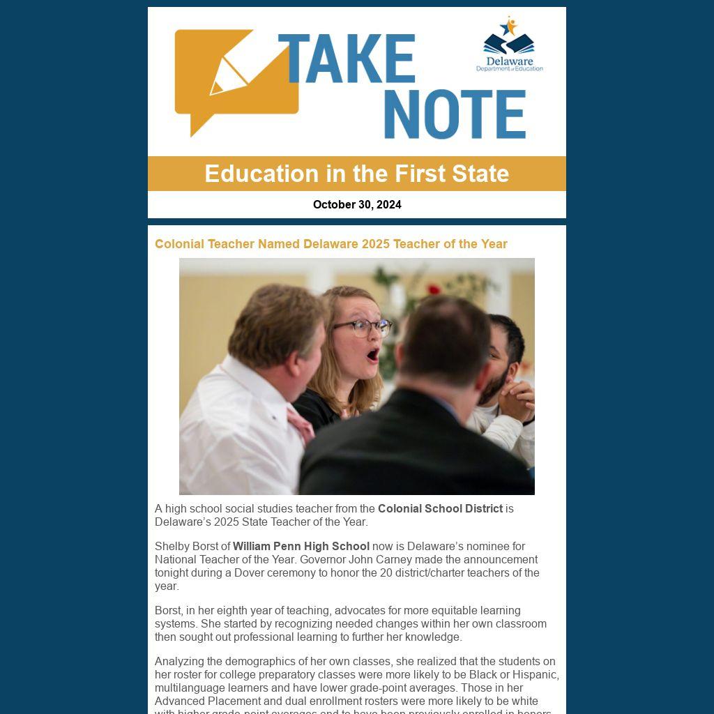 Colonial Teacher Named Delaware 2025 Teacher of the Year