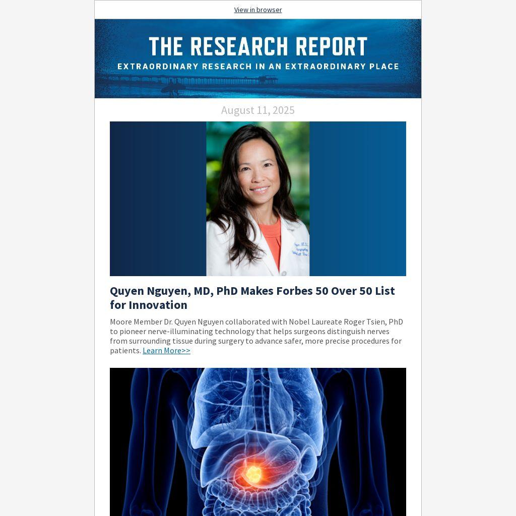 Moore Member Dr. Quyen Nguyen collaborated with Nobel Laureate Roger Tsien, PhD to pioneer nerve-illuminating technology that helps surgeons distinguish nerves from surrounding tissue during surgery to advance safer, more precise procedures for patients. Learn More>>