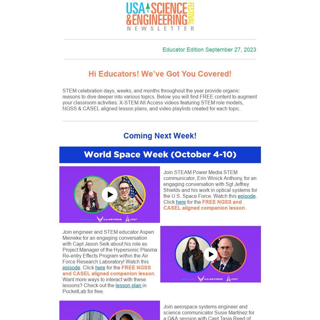 Join STEAM Power Media STEM communicator, Erin Winick Anthony, for an engaging conversation with Sgt Jeffrey Shields and his work in optical systems for the U.S. Space Force. Watch this episode. Click here for the FREE NGSS and CASEL aligned companion lesson.
