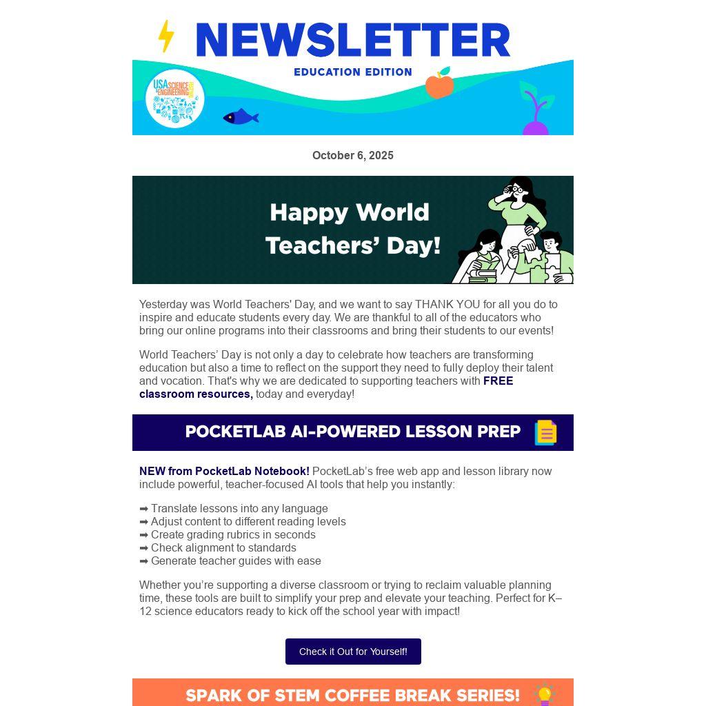 Yesterday was World Teachers' Day, and we want to say THANK YOU for all you do to inspire and educate students every day. We are thankful to all of the educators who bring our online programs into their classrooms and bring their students to our events!
