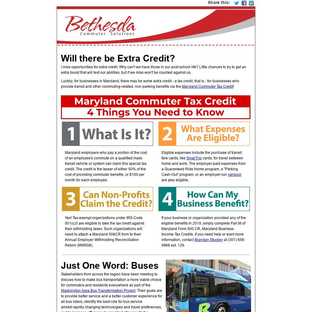 Luckily, for businesses in Maryland, there may be some extra credit - a tax credit, that is - for businesses who provide transit and other commuting-related, non-parking benefits via the
