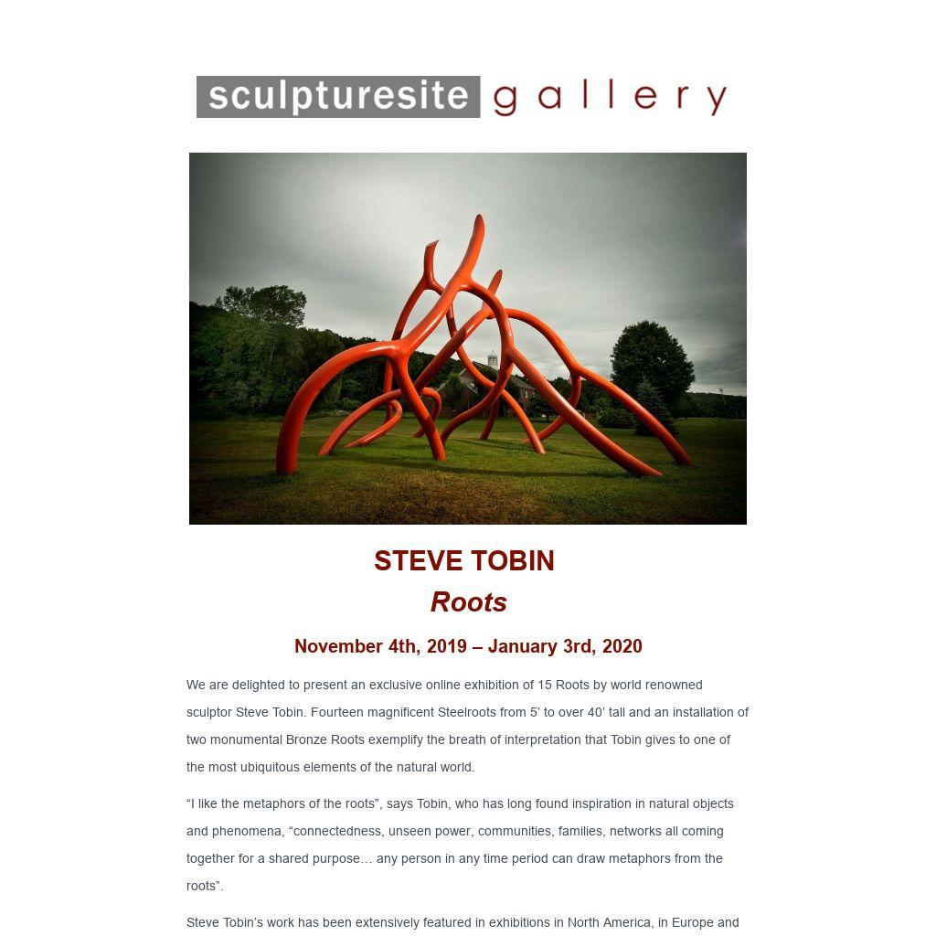We are delighted to present an exclusive online exhibition of 15 Roots by world renowned sculptor Steve Tobin. Fourteen magnificent Steelroots from 5’ to over 40’ tall and an installation of two monumental Bronze Roots exemplify the breath of interpretation that Tobin gives to one of the most ubiquitous elements of the natural world.
