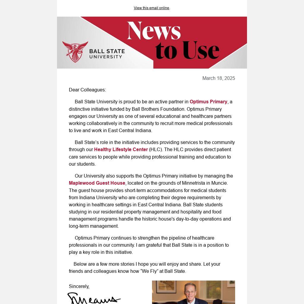 Copyright © 2025 Ball State University, All rights reserved. News and updates from Ball State's president.