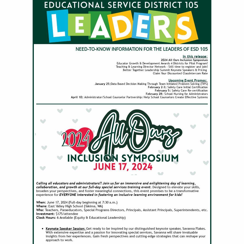 NEED-TO-KNOW INFORMATION FOR THE LEADERS OF ESD 105 |