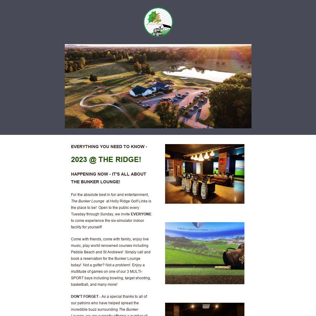 - Year 2 of The Holly Ridge Junior Golf Academy starts this spring!