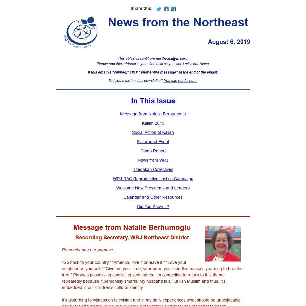 This eblast is sent from northeast@wrj.org.
